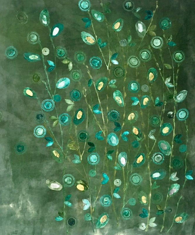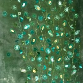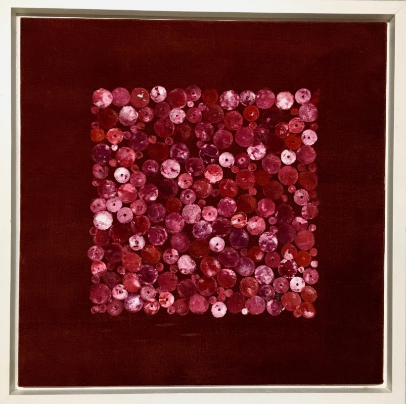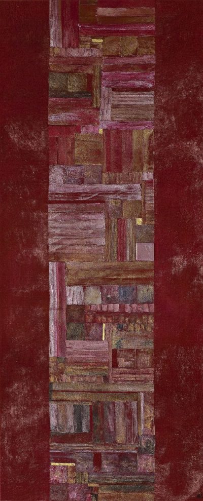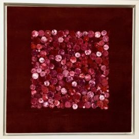 Some of her textile designs became part of the company collection of the firm Lorenzo Rubelli s.p.a. Other designs were honored by the Palazzo Mocenigo Textile Museum in Venice and placed in the museum's permanent collection. Since 1997, her interest has focused on an exploration of printing on velvet, a technique that has marked her creative identity. In a very personal and original way, she has reinterpreted the ancient technique for dyeing and printing Venetian tapestries. Each of her white silk velvet, is hand dyed with pigments and precious ancient powders. The surface of the silk velvet becomes magical, tactile and alive, enriched by brilliant colors, gold and silver leaves, glass and Murrine from Murano island. The silk velvet illuminated by natural or artificial light, either direct or diffused, can completely change color, continuosly mutating into a new and surprising work. The colors and glass details appear and disappear depending on the direction from which the tapestry is viewed: what was not grasped at first sight emerges unexpectedly after careful and patient observation, leaving astonished.