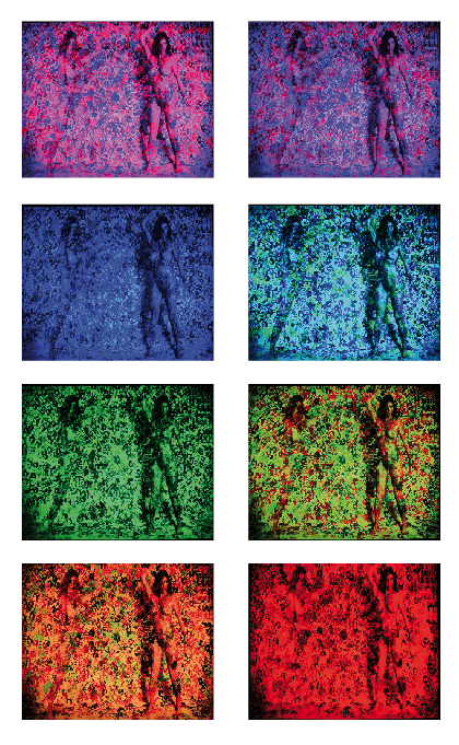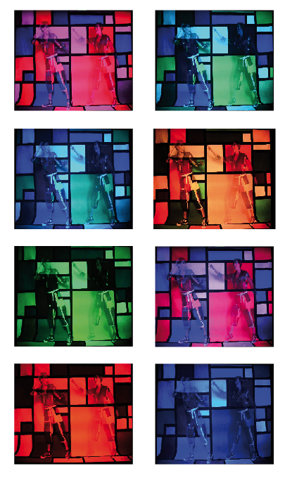 Where pop artists of the past would make screen prints using differing palettes to repeat the image, CecilBoyd present many potential palettes in one image. As Goethe wrote, colour possesses an ‘empirical feeling’. Having the ability to choose the hue of the image according to any external variable allows the viewer to have an enhanced emotional engagement with the piece.