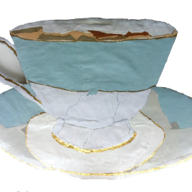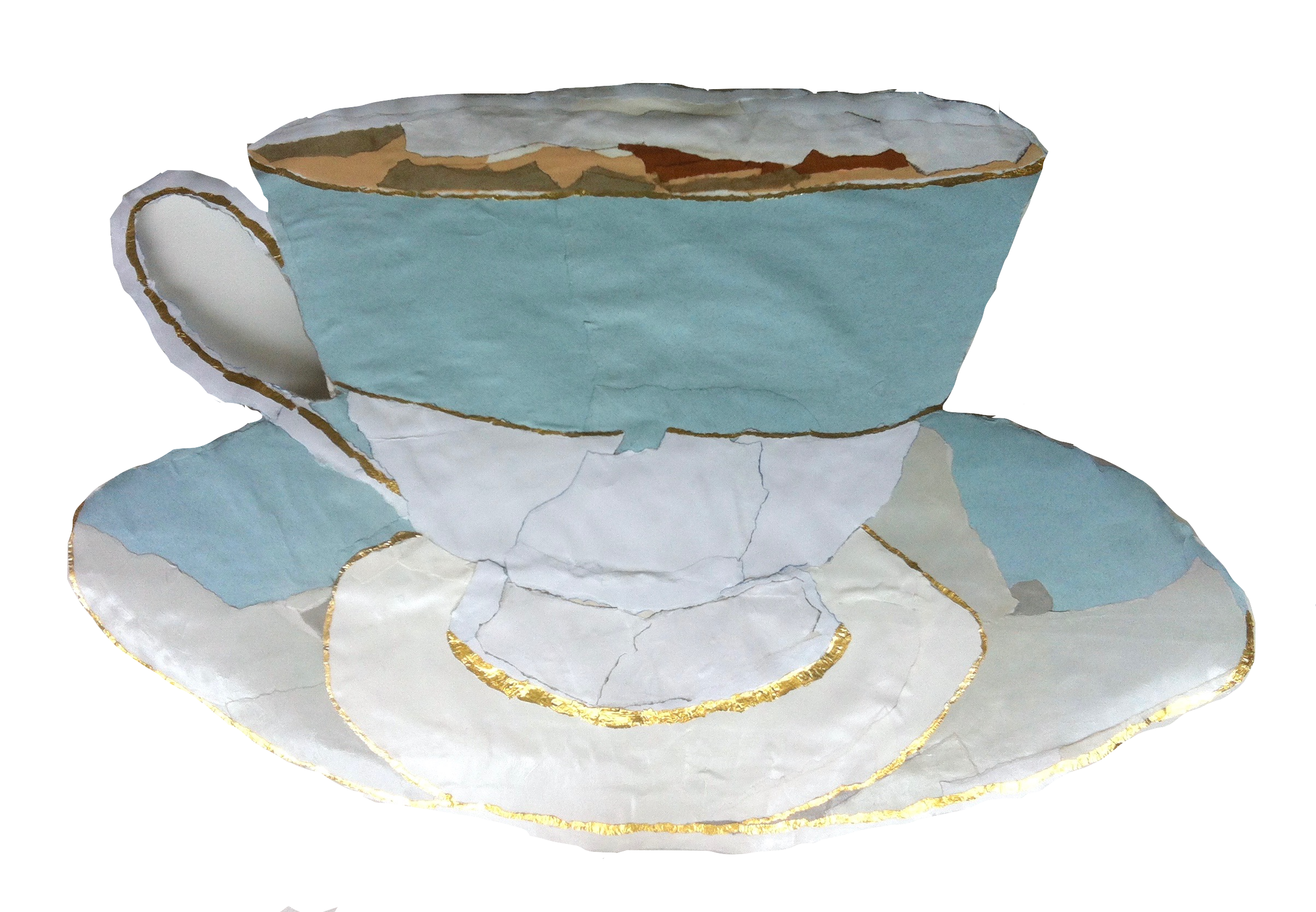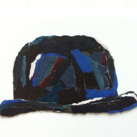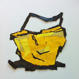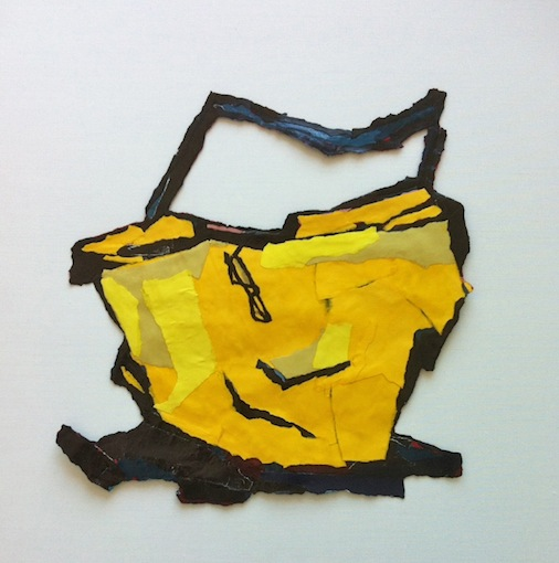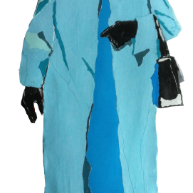 On découvre une composition subtile et harmonieuse de déchirures de papiers colorés – gamme de tons froids et doux à l’aspect brillant. Totalement présents par leur attitude corporelle mais mystérieusement absents par leurs visages sans aucun détail, ces figures semblent perdues dans une introspection infinie.