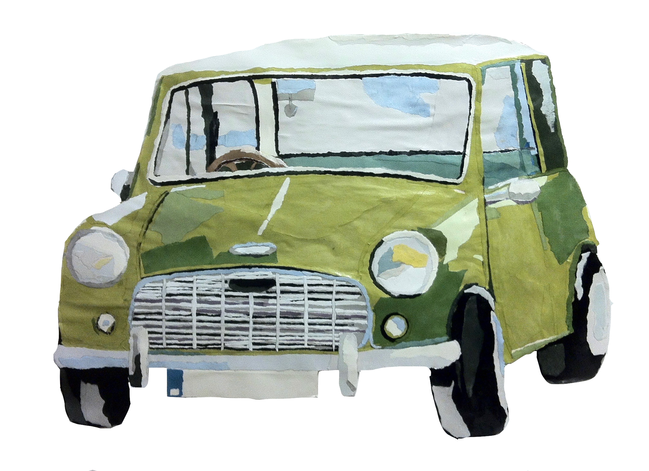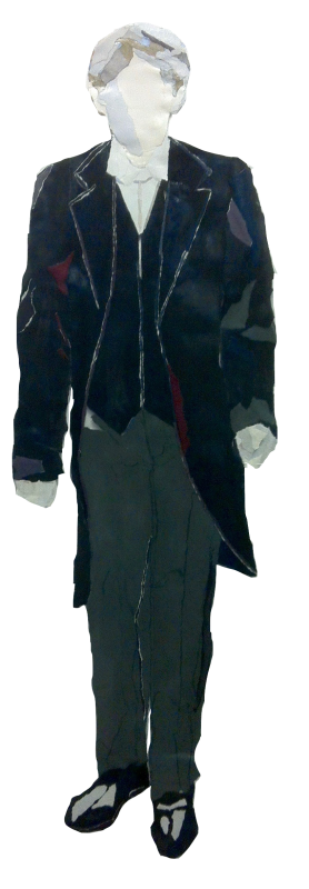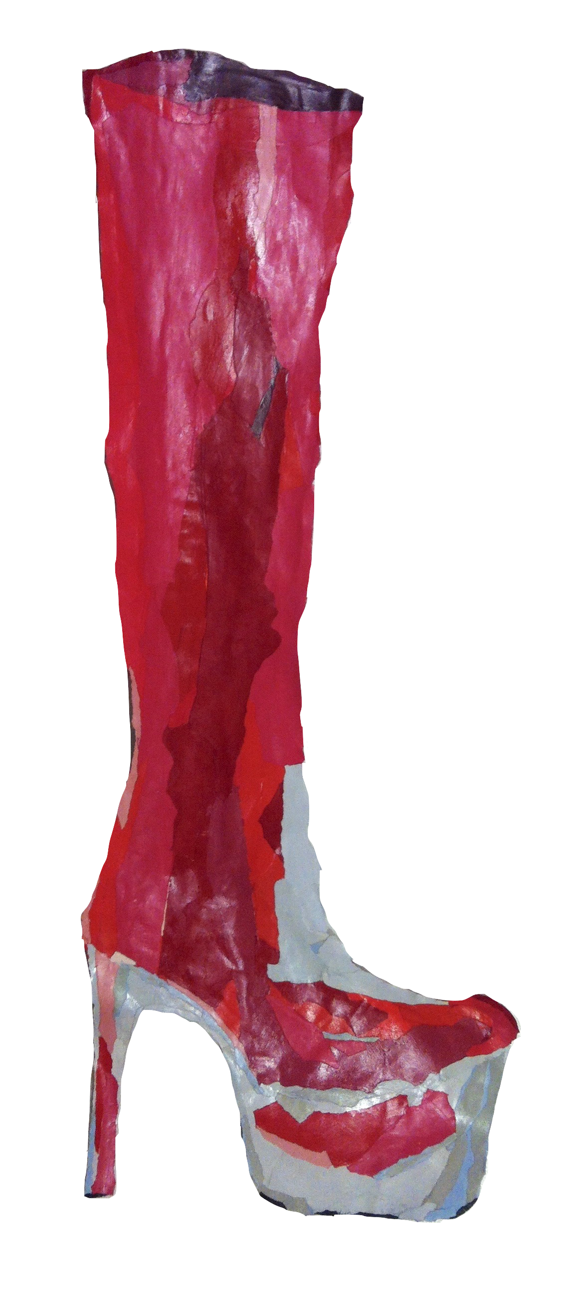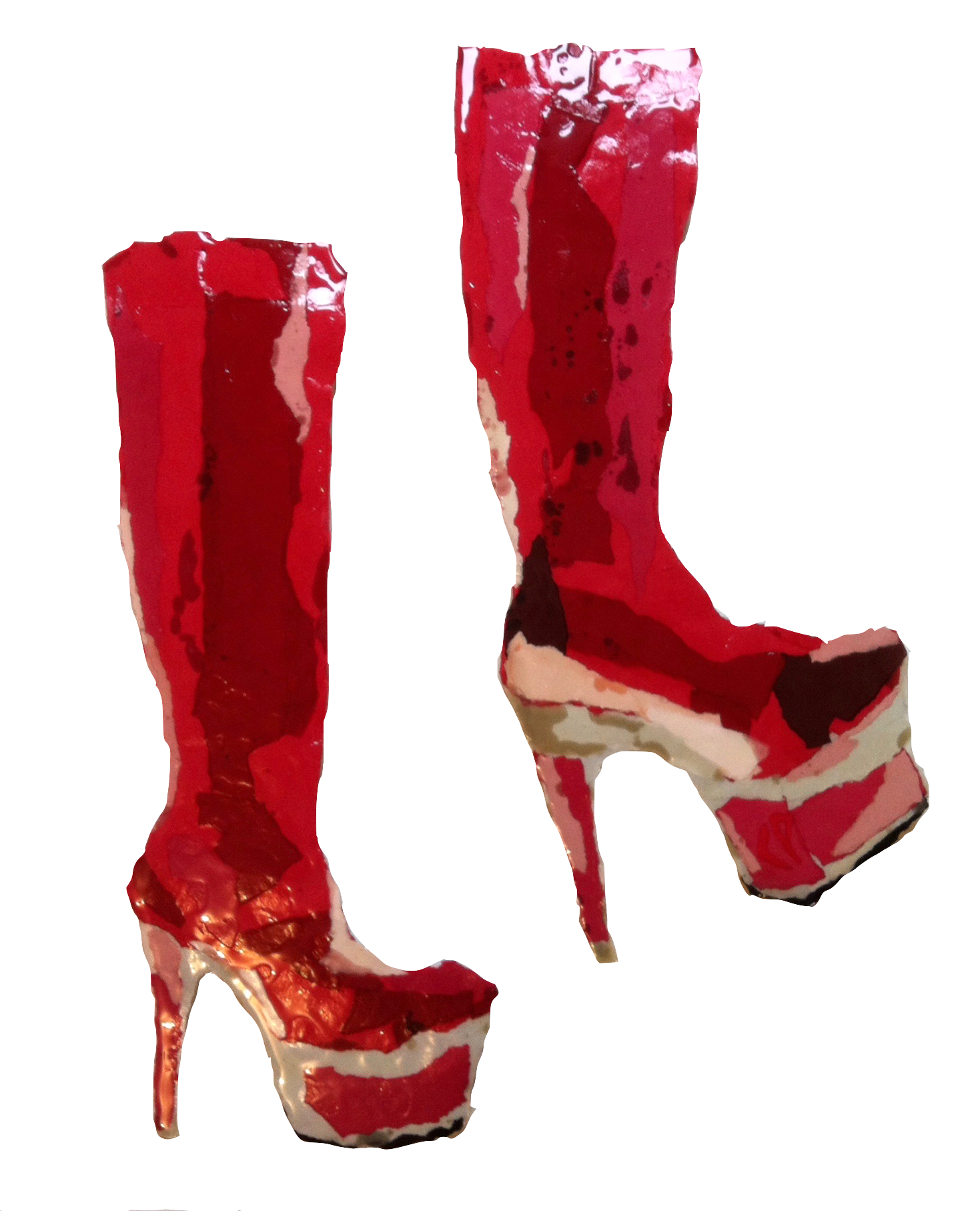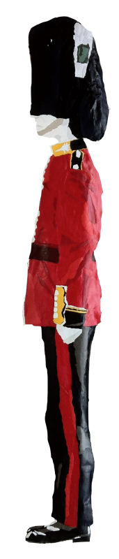 Les oeuvres sont découpées puis proposées dans leurs formes directes sans fond ni contexte. La technique du papier déchiré puis assemblé en collages successifs est magnifié par la façon qu’a l’artiste de les mettre en scène : les personnages sont accrochés à 5cm du mur et les effets de lumière leur donnent relief et profondeur.