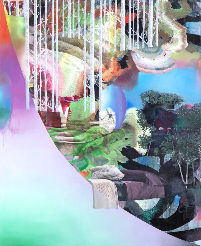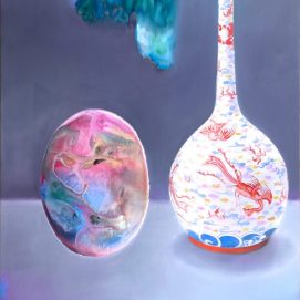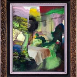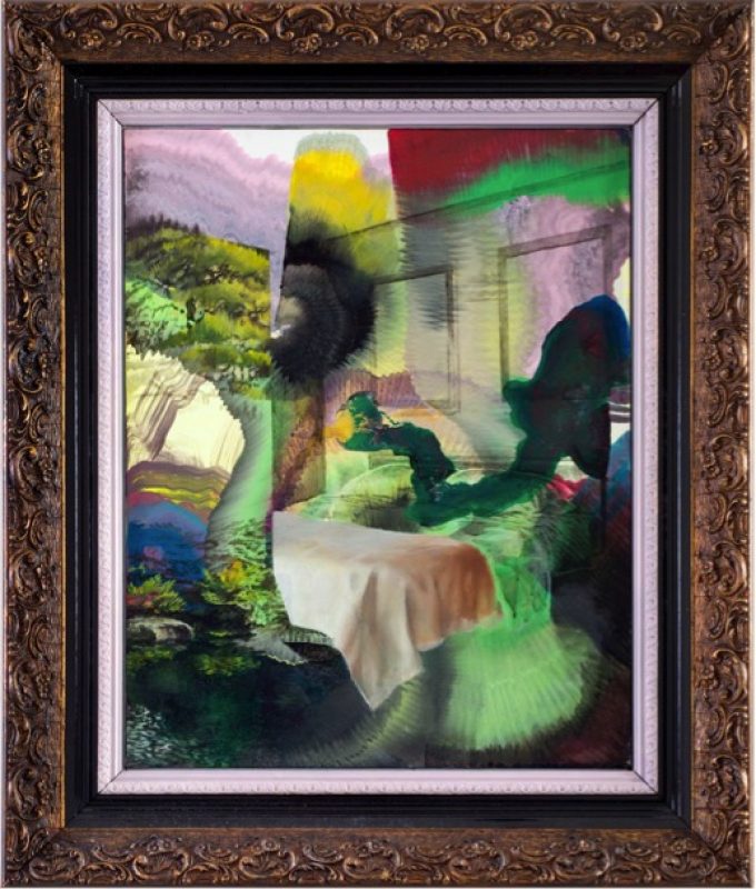 Pontrelli’s work is strongly influenced by the condition of chromatic alteration of our environment caused by the increasingly widespread presence of the new media. His paintings display clear conceptual processing not so much in the formulation of images as in the formulation of color. It is a strong demonstration of a way of perceiving the world which Pontrelli constantly expresses in painting, but also in other forms. In 1998 he worked with a simple home video of a wedding, altering its colors and re-editing the sequences. Such images are the electronic facet of his work, the explicit reference point for his paintings.