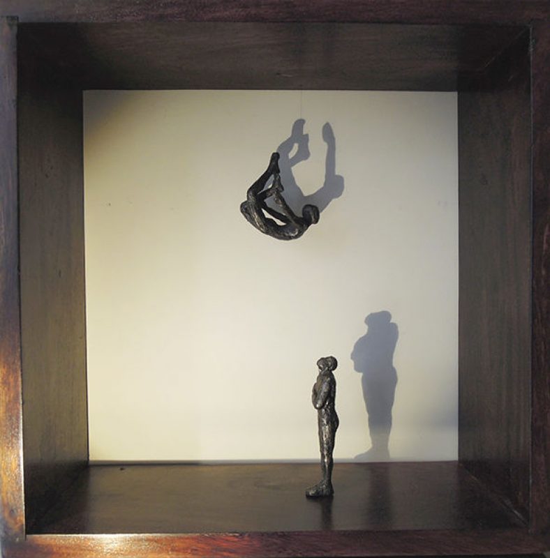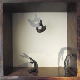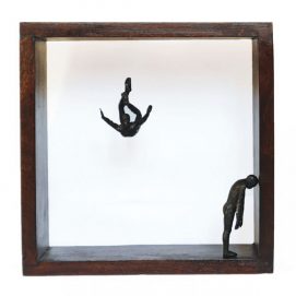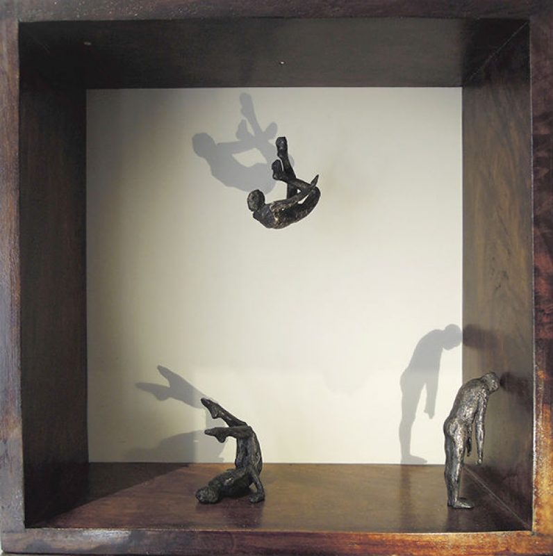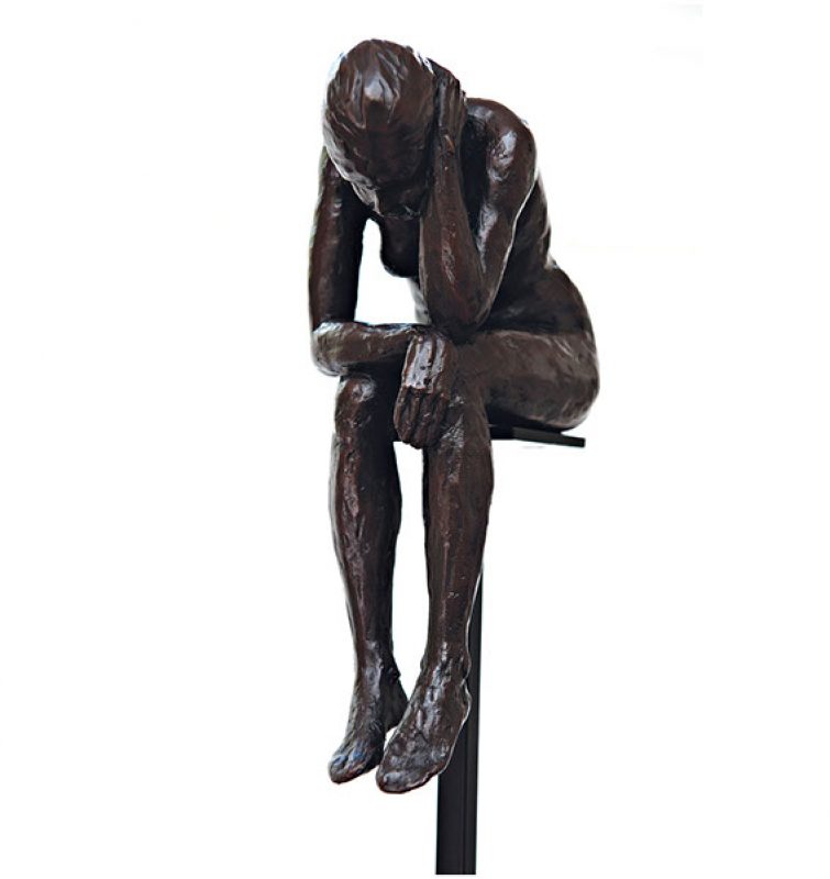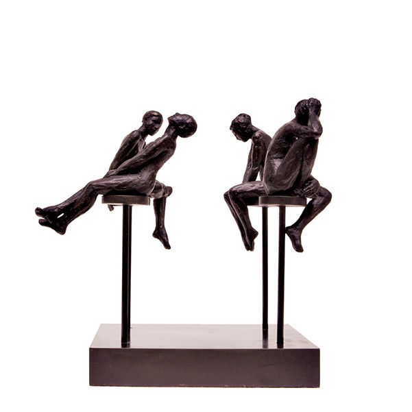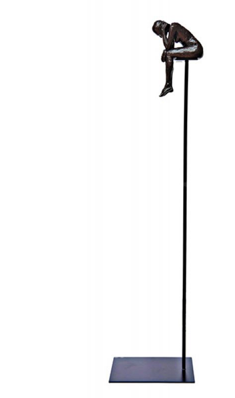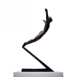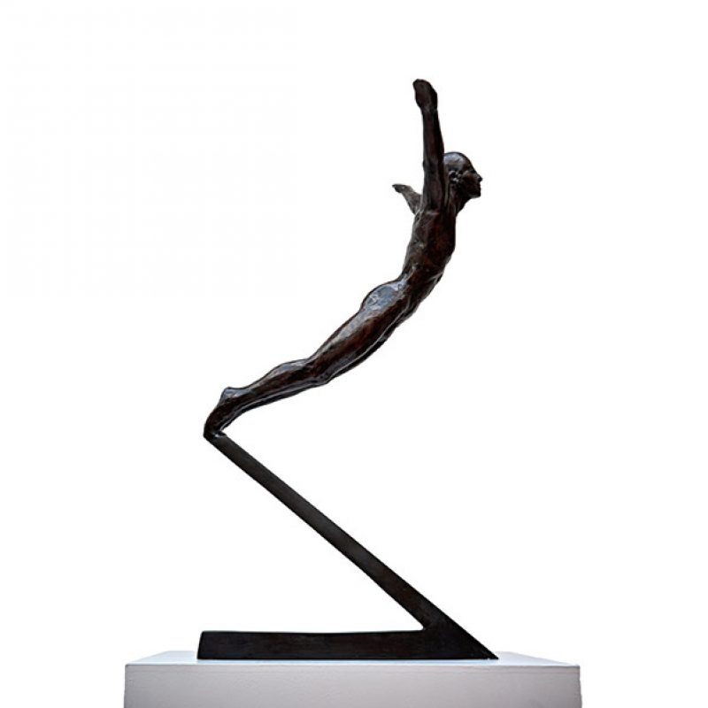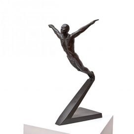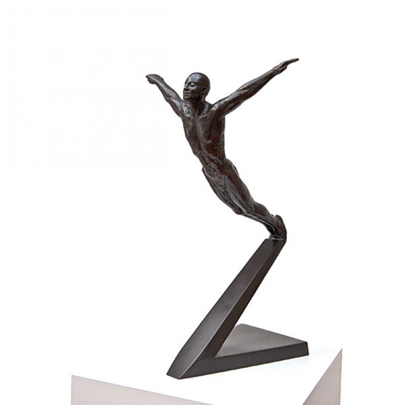 In her early years, Laurence was a competitive gymnast and athletic influences such as poise and balance can be seen throughout her work. The figures challenge gravity with subtle poses or sometimes snapshot of body action.