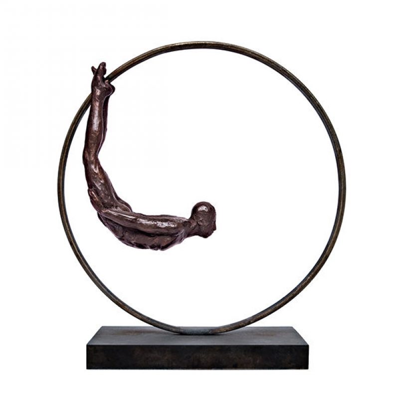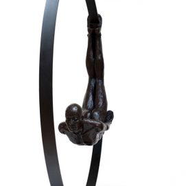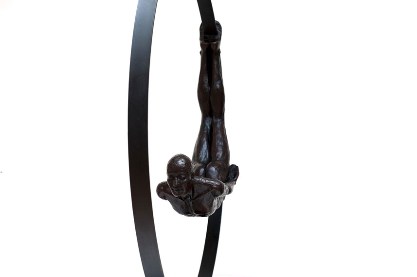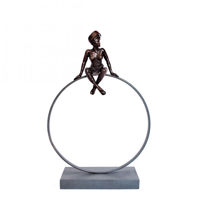 In the circles series the figure is using the latter as a frame, a support or an accessory. Laurence is continuously researching for movement, lightness, energy and spontaneity in contrast with static poses often represented in sculpture.