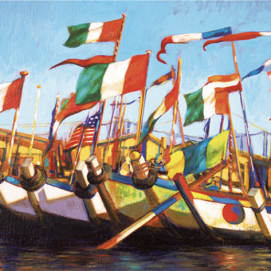 Official Painters of the French Navy receive no remuneration from the Ministry of Defence. Their sole obligation is to participate every two years in the “Salon de la Marine” which is held at the Musée de la Marine in Paris. The only privilege granted to them is to be able to add an anchor to their works by their signature.