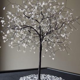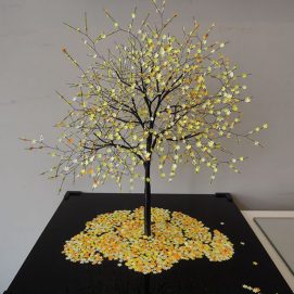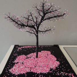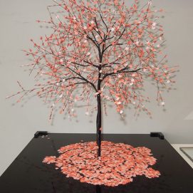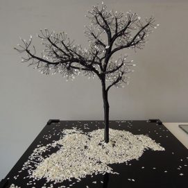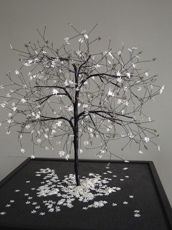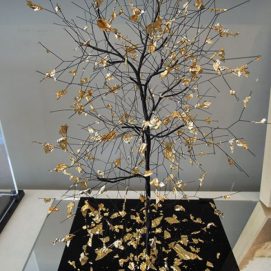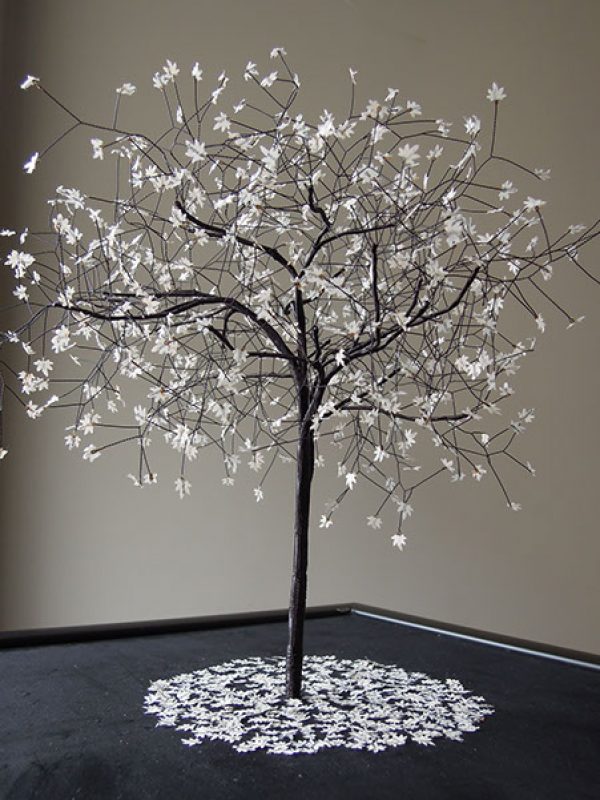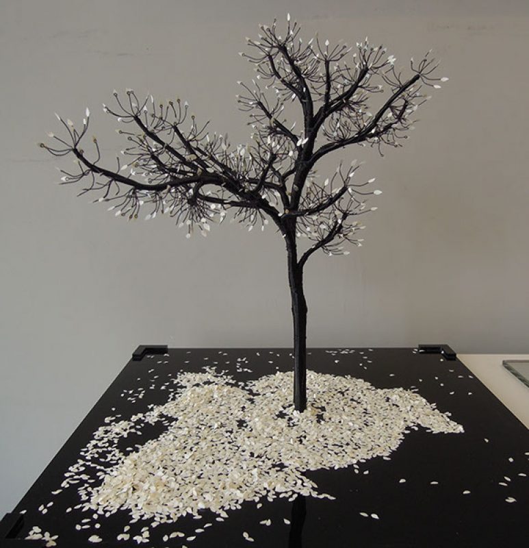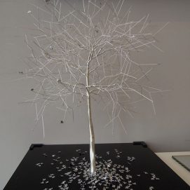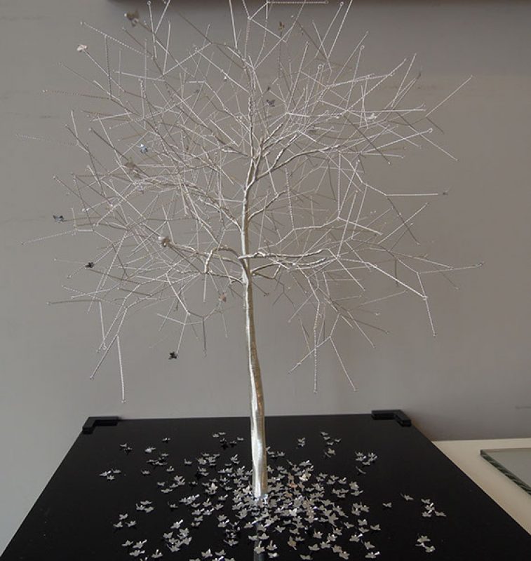 Nayla started sculpting from an early age, and found her inspiration in trees. She works mainly with metal wires and paper or photographs.