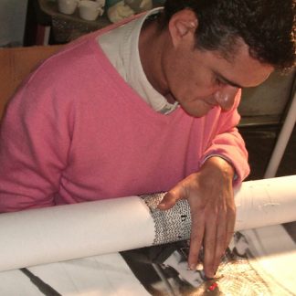 After studying film-making at the Conservatoire Libre du Cinema Francais, Olivier Camen starts his career in the broadcasting world and realising set designs. He then moves to textile decoration, which will be the basis of his art when he becomes full time artist.